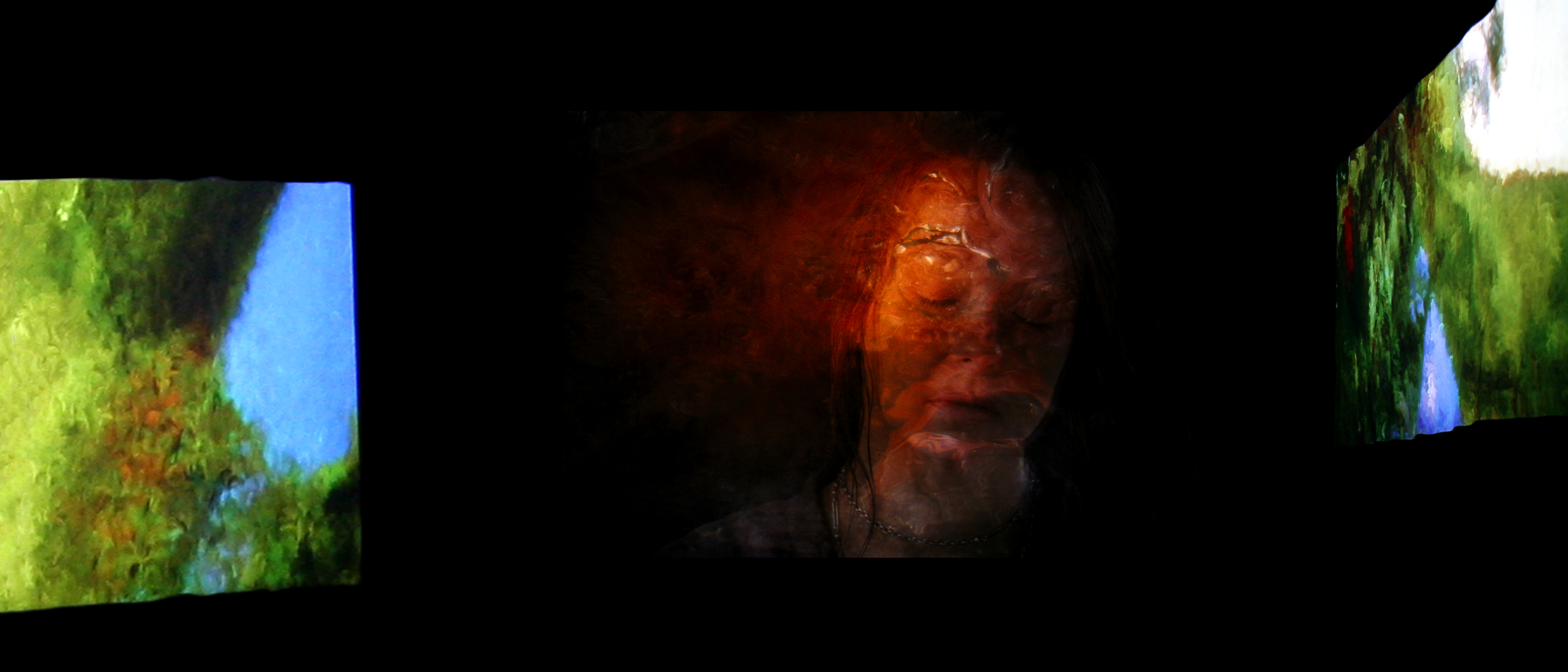 Installations are site specific (labyrinth, corridor, or large spaces), ranging between single screen and up to 30 channels or more, of choreographed video.