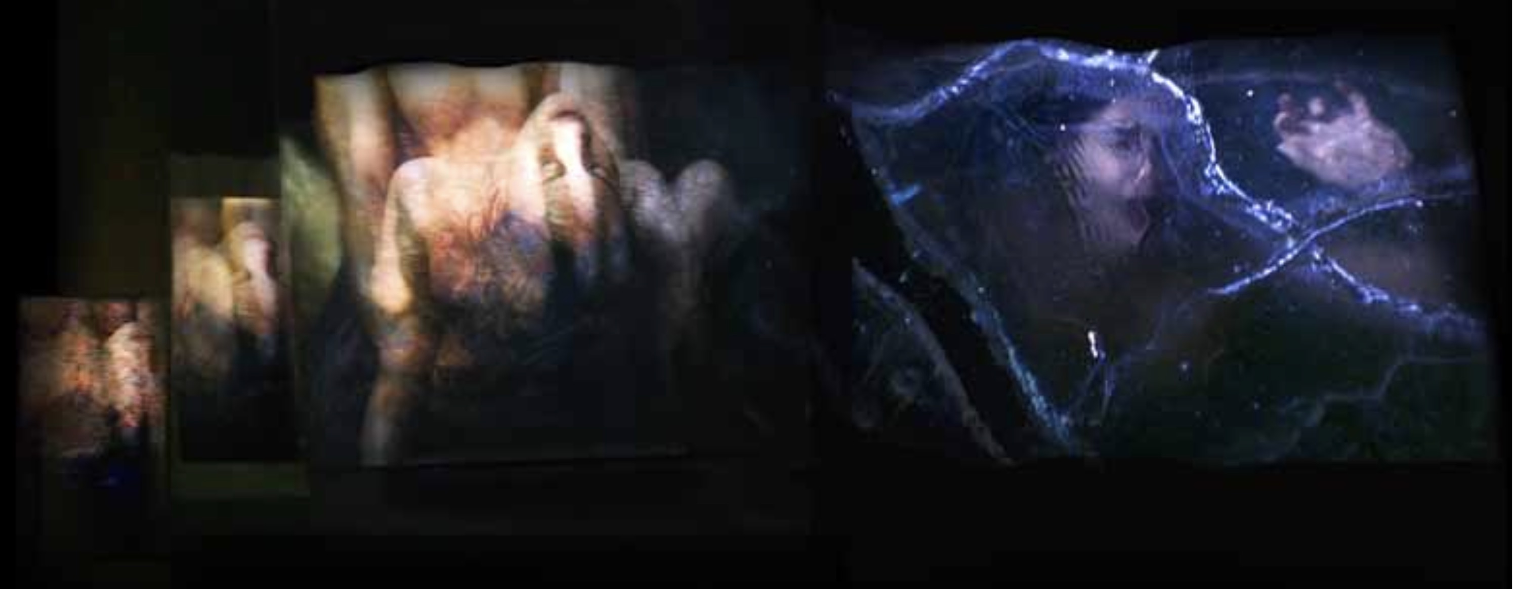 Vincent Ward’s immersive, choreographed video installation surrounded viewers in layered sequences of human figures in water abstracted in foetal sacs with fish. While in another space a trapped bird "flew from screen to screen" around a room. Separately a large naked man lay vulnerable on the main street of a small town as eerily a wild horse loomed towards him.
